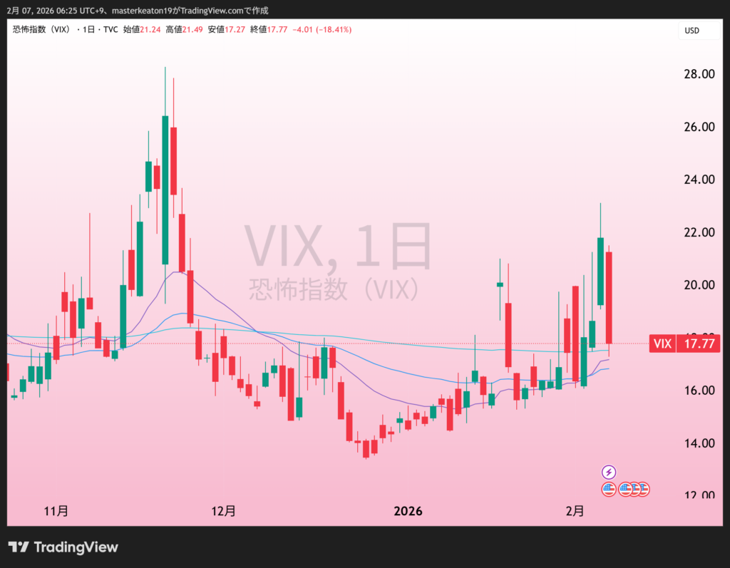 • アルファベットの設備投資: アルファベットが巨額の設備投資計画を示し、AI投資の不透明感からハイテク売りが加速。VIX指数は不安の目安とされる20を超え、市場のリスク回避姿勢が強まった。