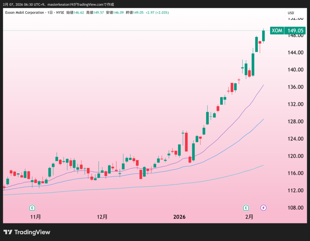 ↓↓エクソンモービル(XOM)の株価チャート(日足)