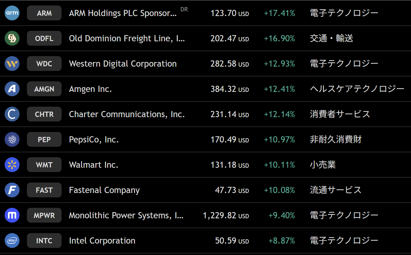 ナスダック 週間上昇ランキングトップ10