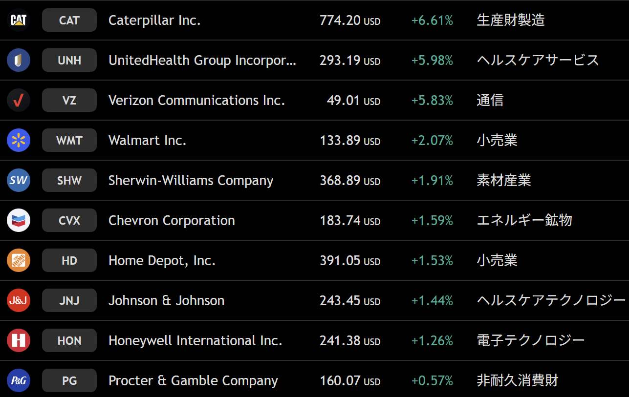 ダウ 週間上昇ランキングトップ10