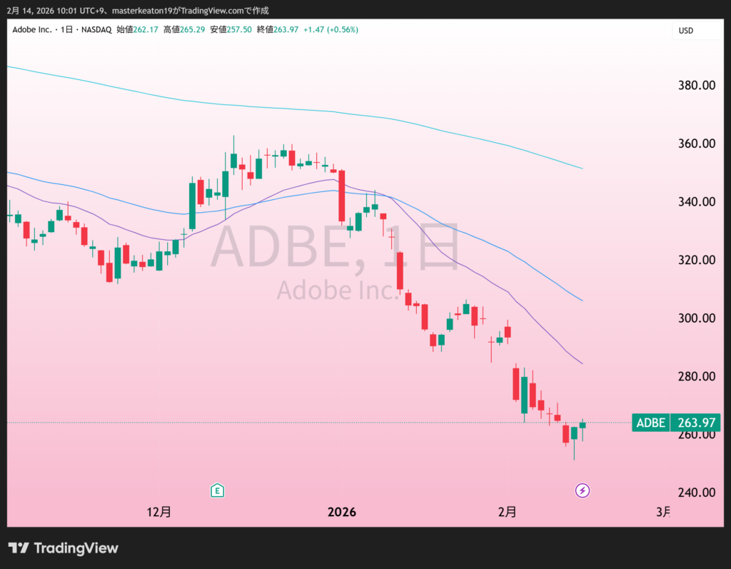 ↓↓アドビ(ADBE)の株価チャート(日足)