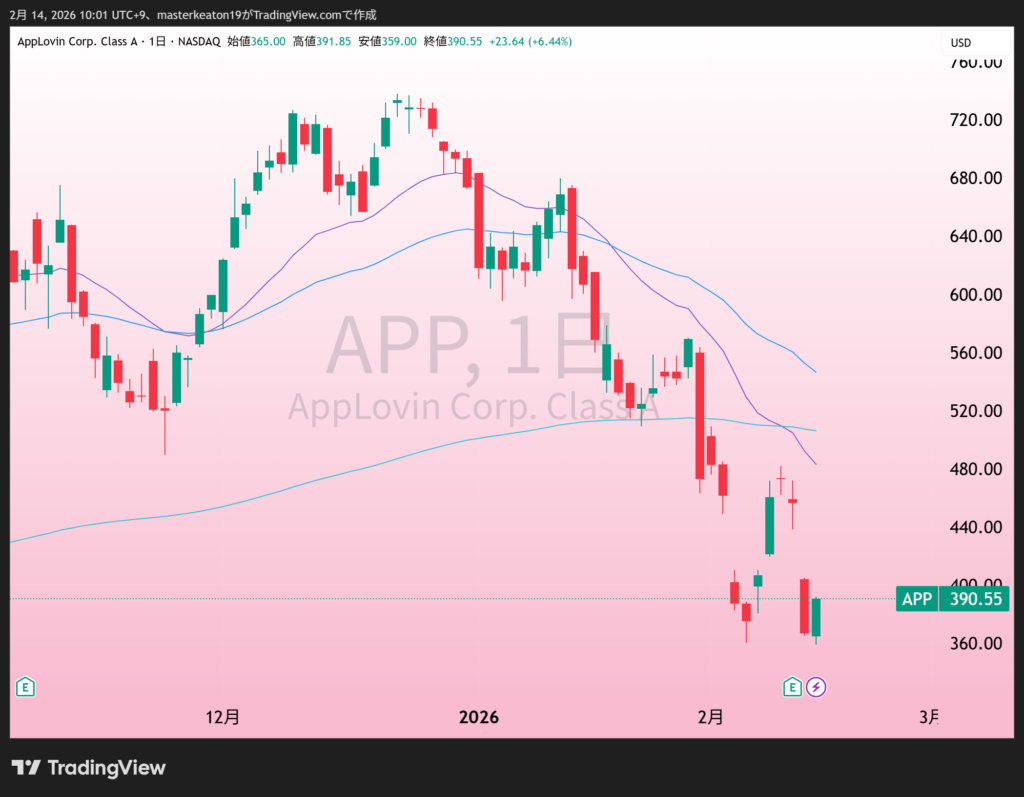 ↓↓アップラビン(APP)の株価チャート(日足)