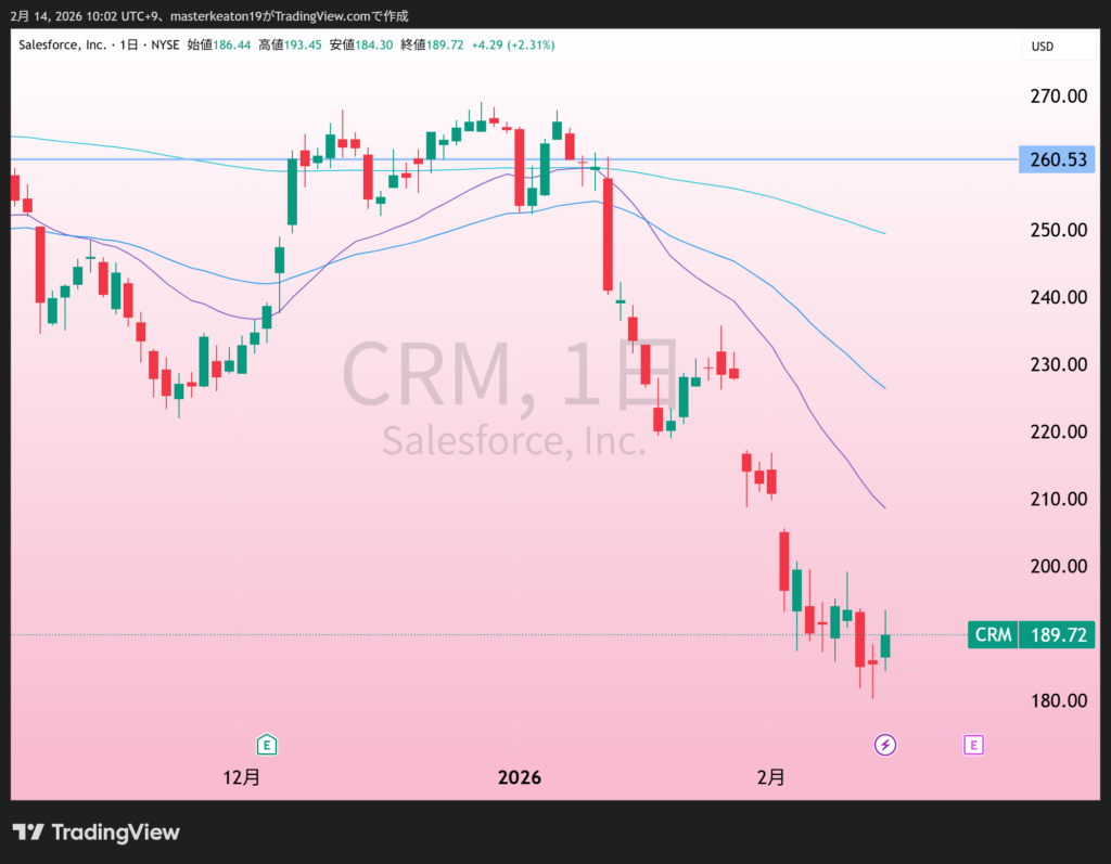 ↓↓セールスフォース(CRM)の株価チャート(日足)
