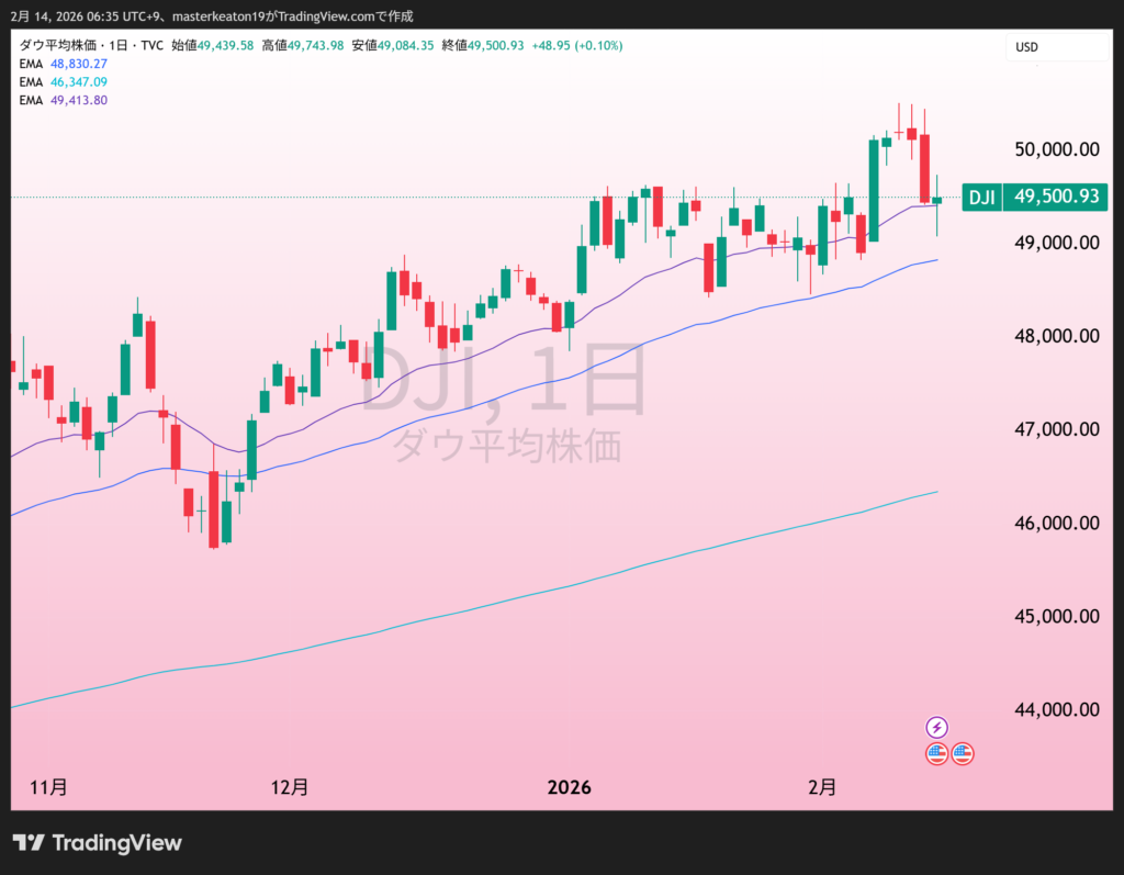- ダウは-1.2%(終値:49500.93)