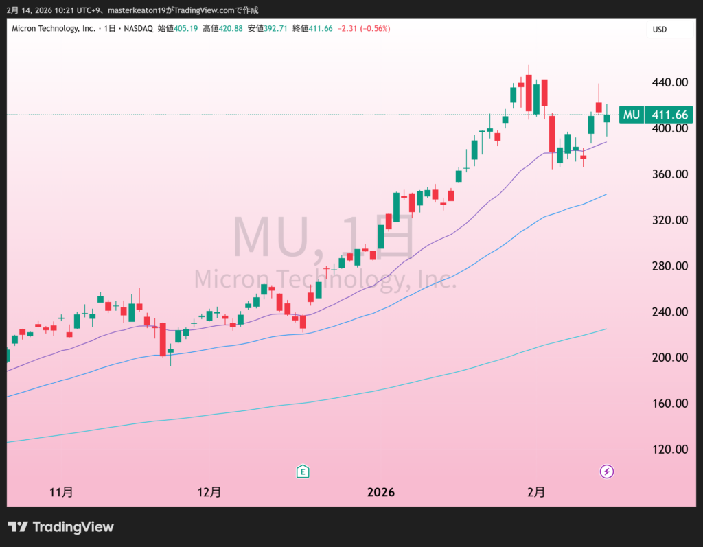↓↓マイクロン・テクノロジー(MU)の株価チャート(日足)