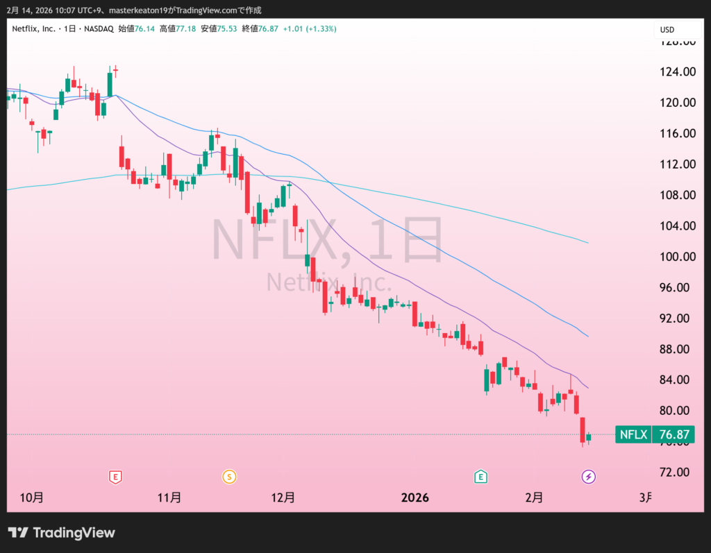 ↓↓ネットフリックス(NFLX)の株価チャート(日足)