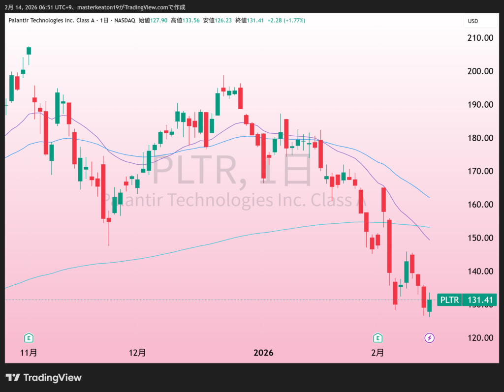 ↓↓パランティアテクノロジー(PLTR)の株価チャート(日足)