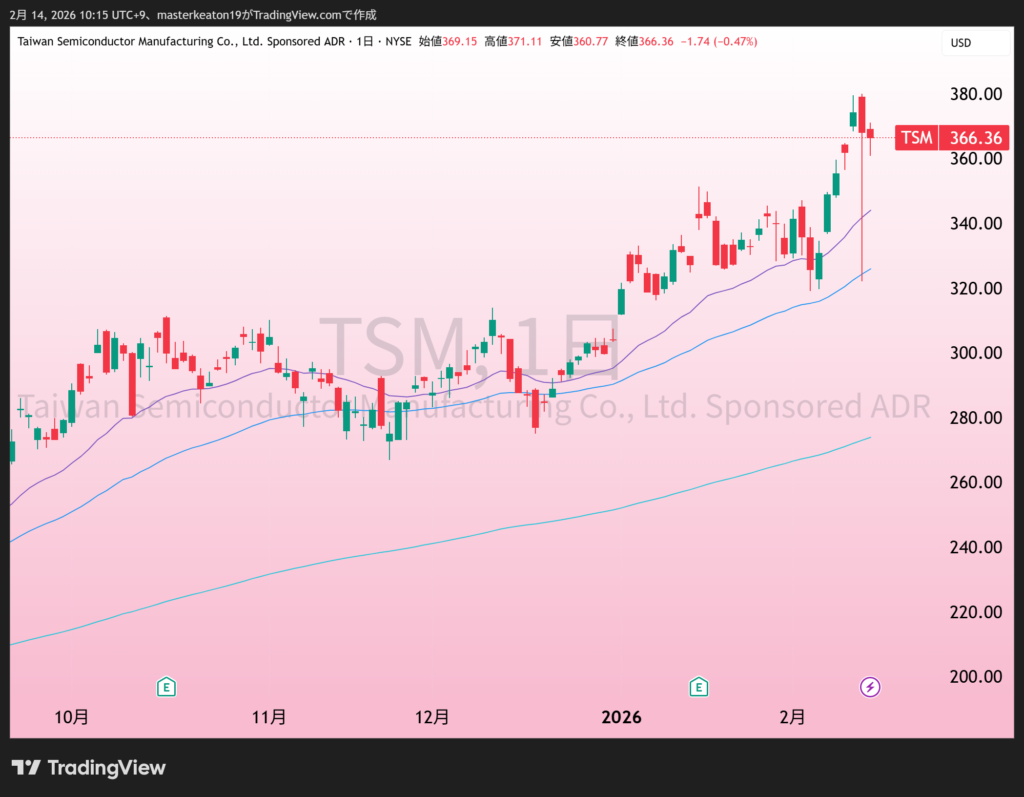 ↓↓TSMC(TSM)の株価チャート(日足)