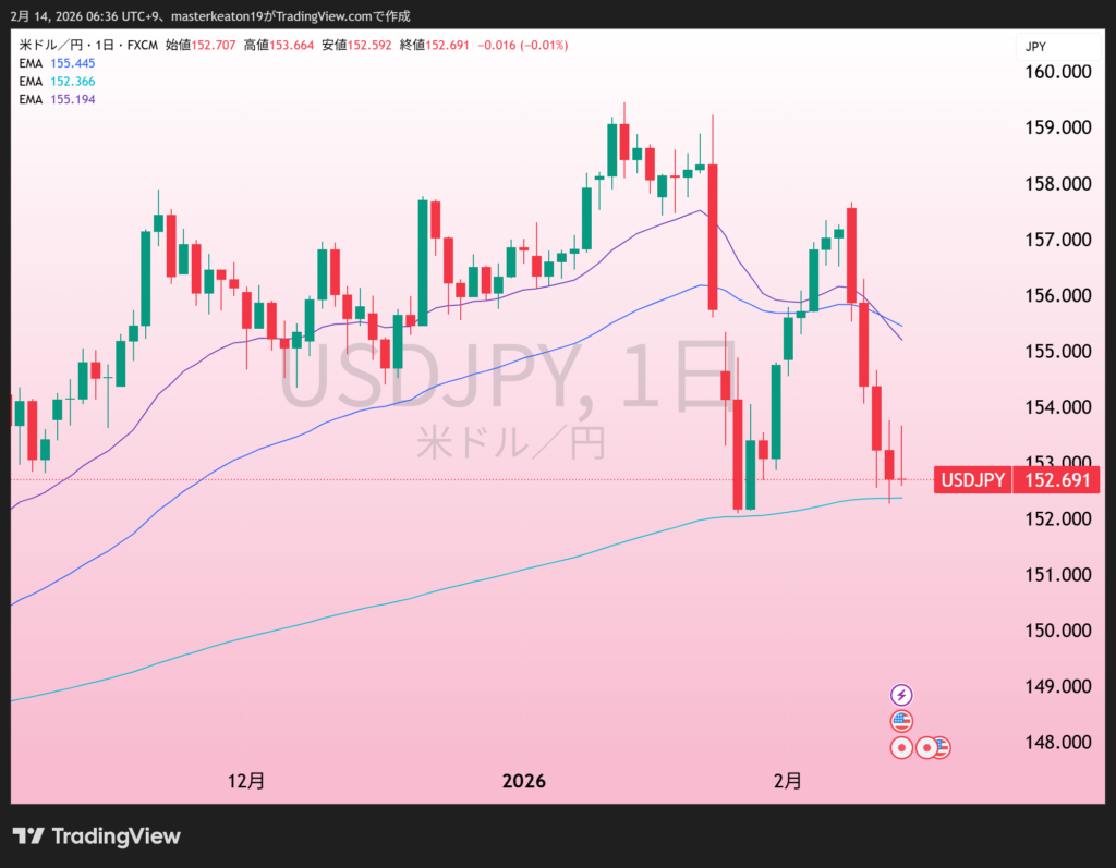 152.69円/ドルと先週から5円ほど下落です。