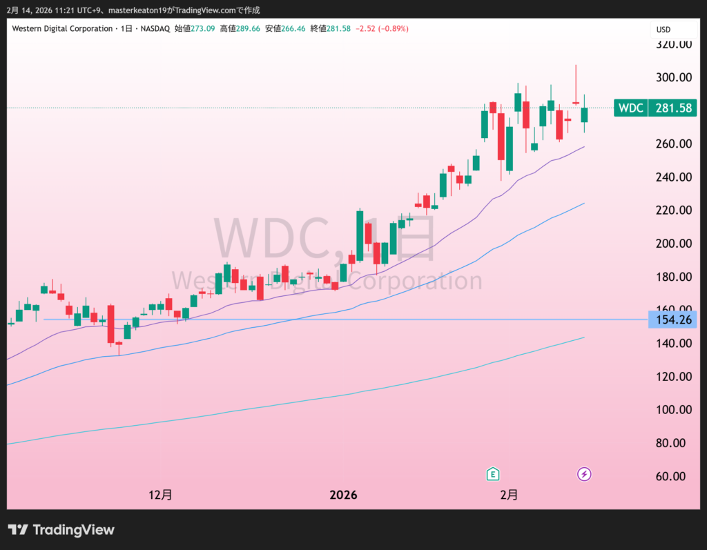 ↓↓ウェスタンデジタル(WDC)の株価チャート(日足)