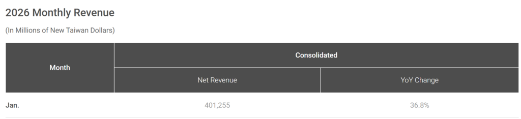 今週頭のTSMCの1月度の売上高発表ありましたね。