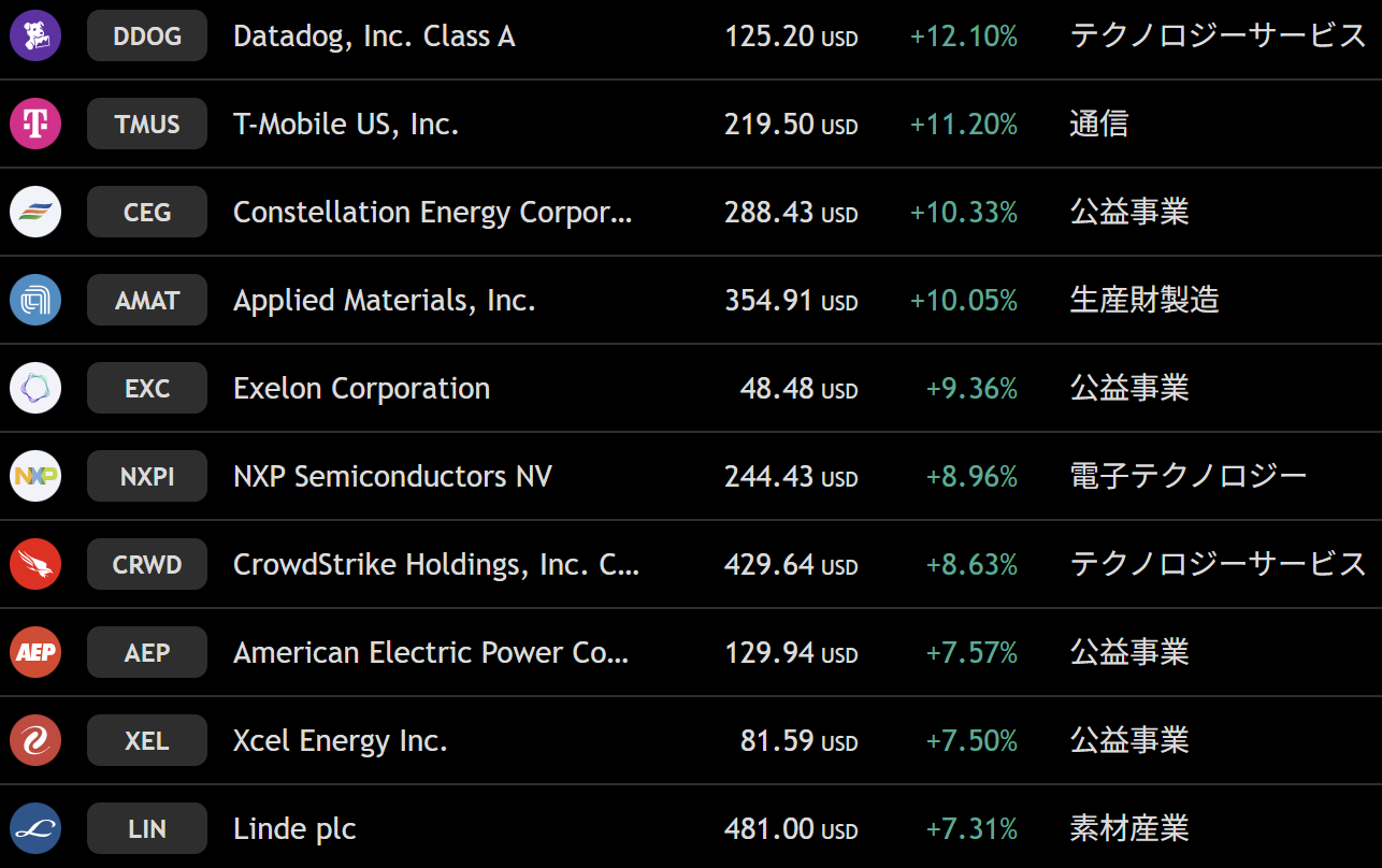 ナスダック 週間上昇ランキングトップ10