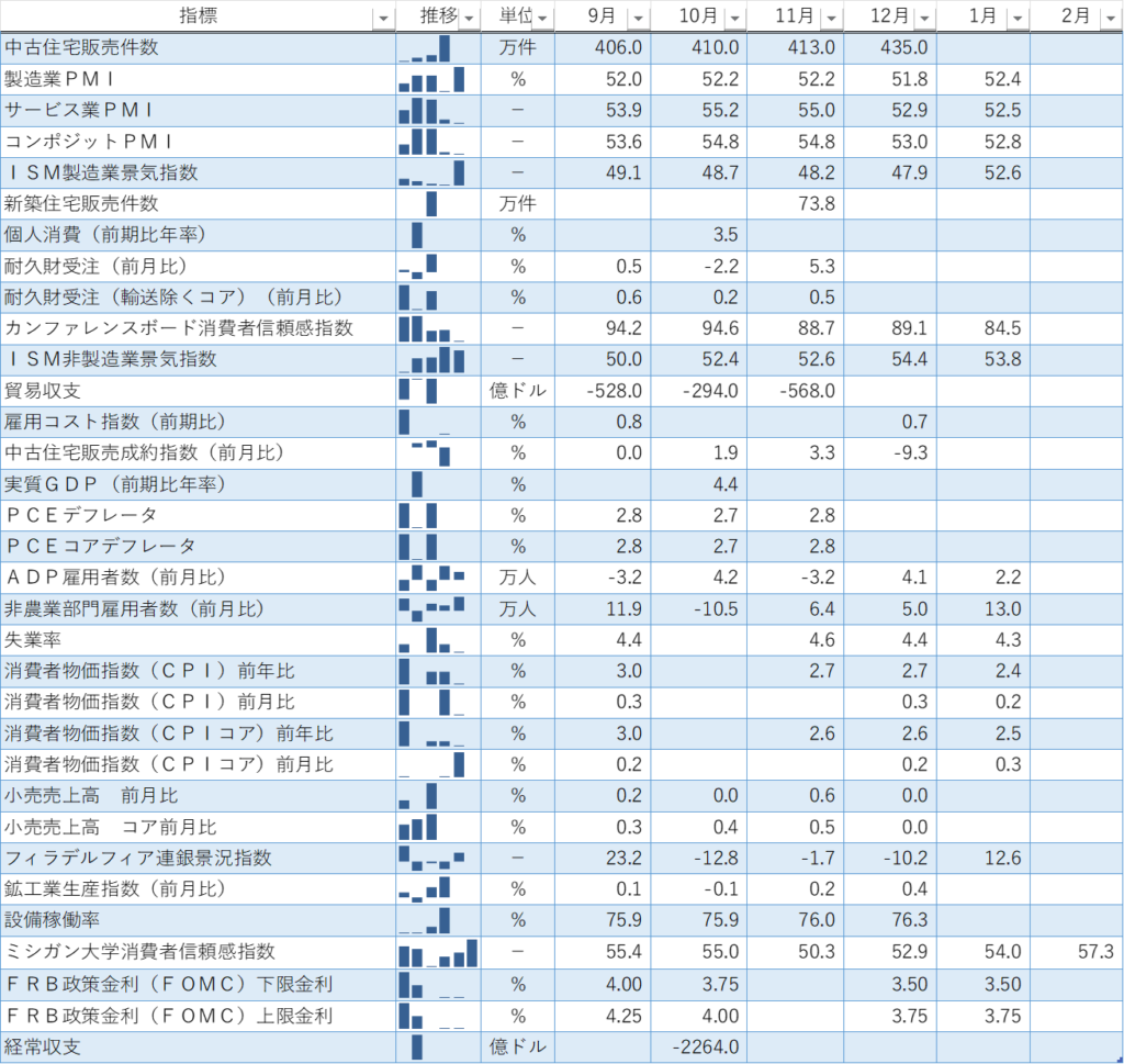過去の指標からながめていくとなんとなく米経済全体の流れが見え、最新ニュースの意味がより深く理解できるようになります。