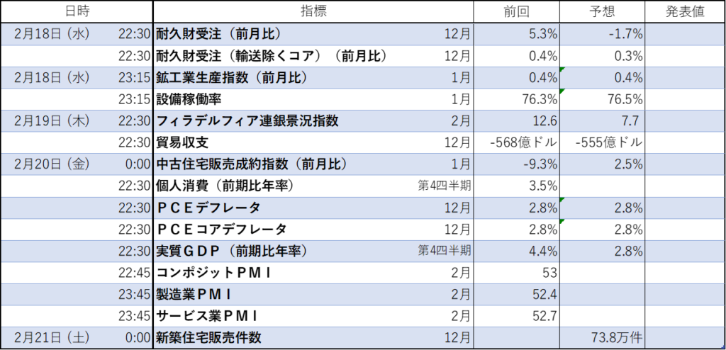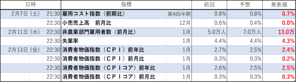 今週のイベント結果(経済指標の結果)