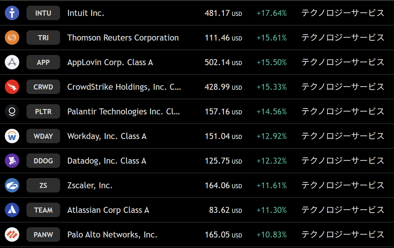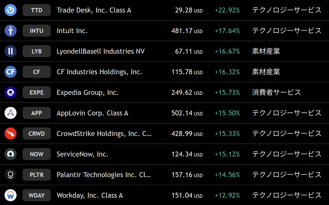 S&P500 週間上昇ランキングトップ10