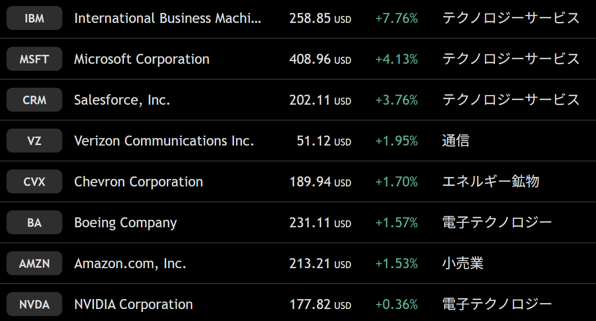 ダウ 週間上昇ランキングトップ10