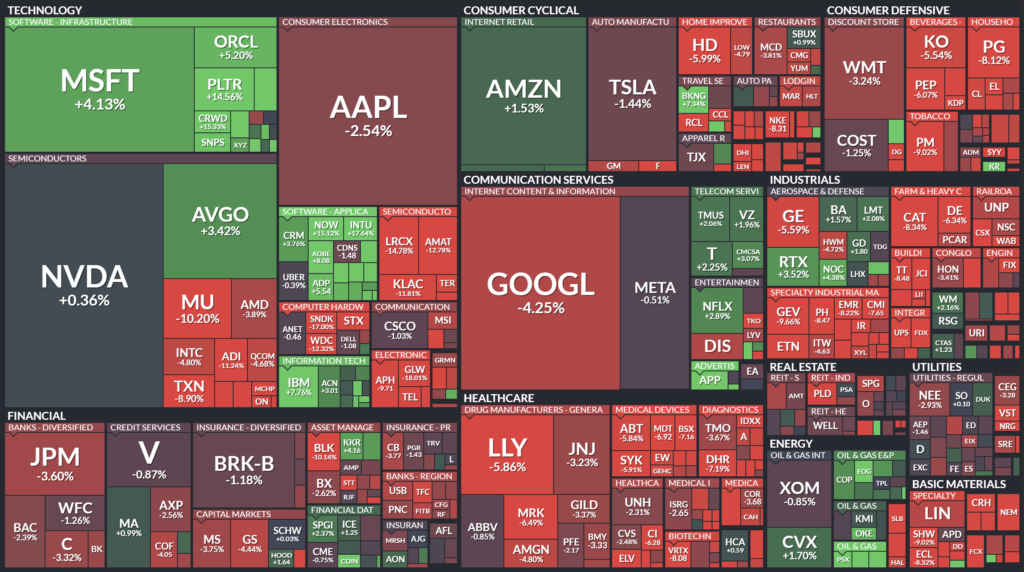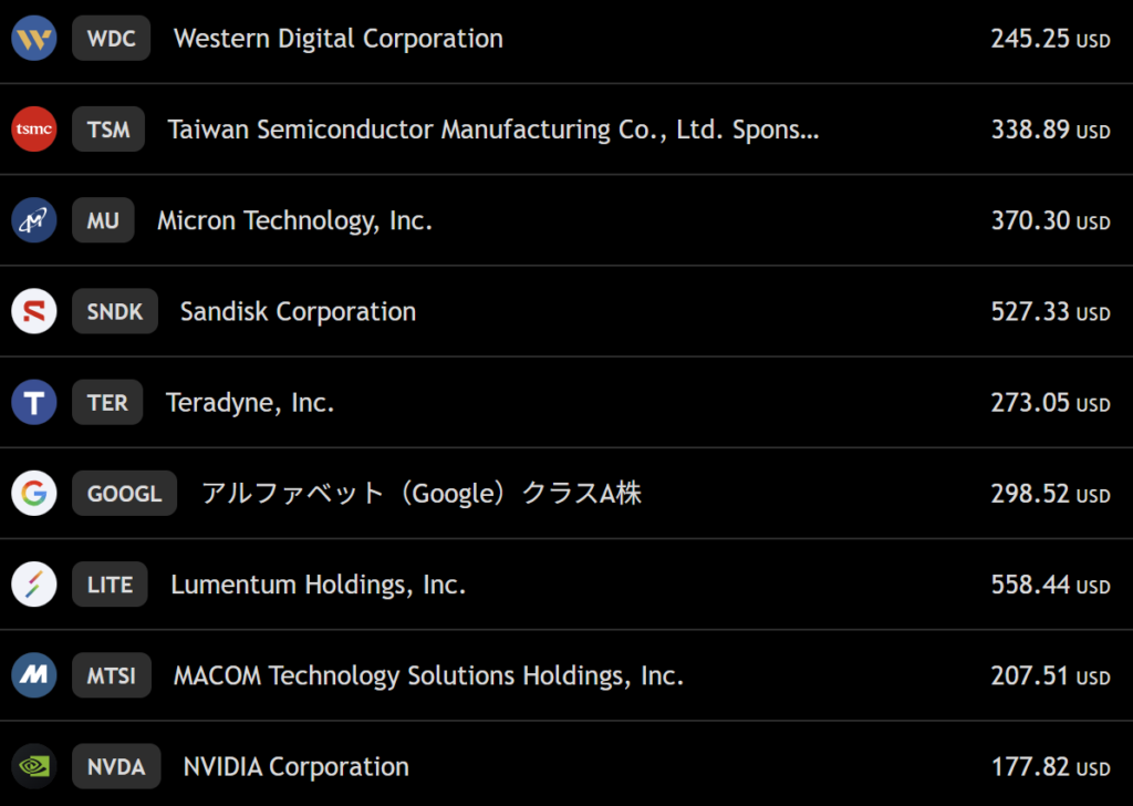 地政学リスクで半導体株は売られる場面があった一方、AI需要への期待からエヌビディアやブロードコムなど一部銘柄は上昇。AI関連株は依然として市場の注目テーマとなっている。