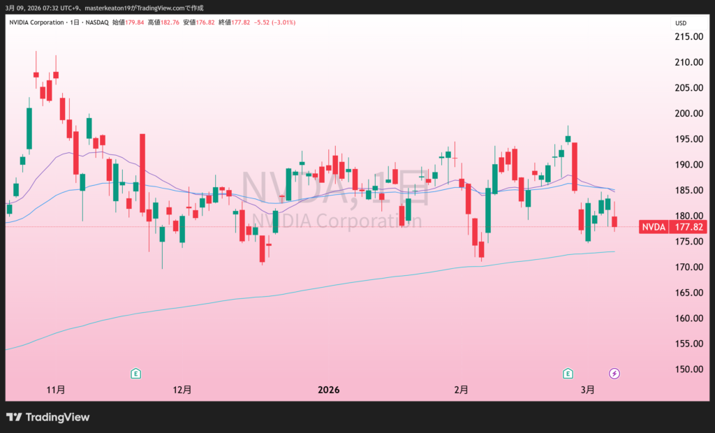 ↓↓エヌビディア(NVDA)の株価チャート(日足)