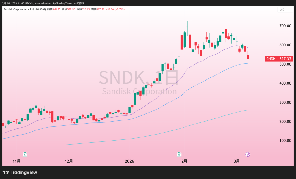 ↓↓サンディスクコーポレーション(SNDK)の株価チャート(日足)