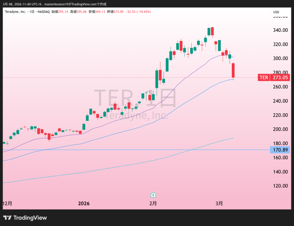 ↓↓テラダイン(TER)の株価チャート(日足)