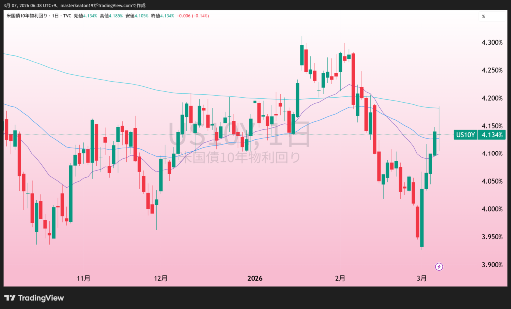 米国とイスラエルがイランを攻撃し軍事衝突が拡大。ホルムズ海峡封鎖の報道もあり原油価格が急騰し、WTI原油は一時92ドル台まで上昇した。エネルギー価格の高騰が世界経済やインフレへの懸念を強め、市場の不安材料となった。