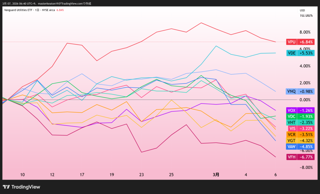 ていうか、ほかのセクターが弱すぎ、株式全体が弱いというのが現状です。