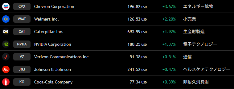 ダウ 週間上昇ランキングトップ10