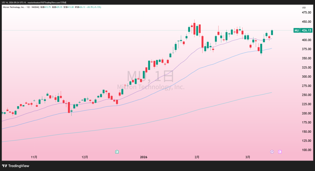 ↓↓マイクロン・テクノロジー(MU)の株価チャート(日足)