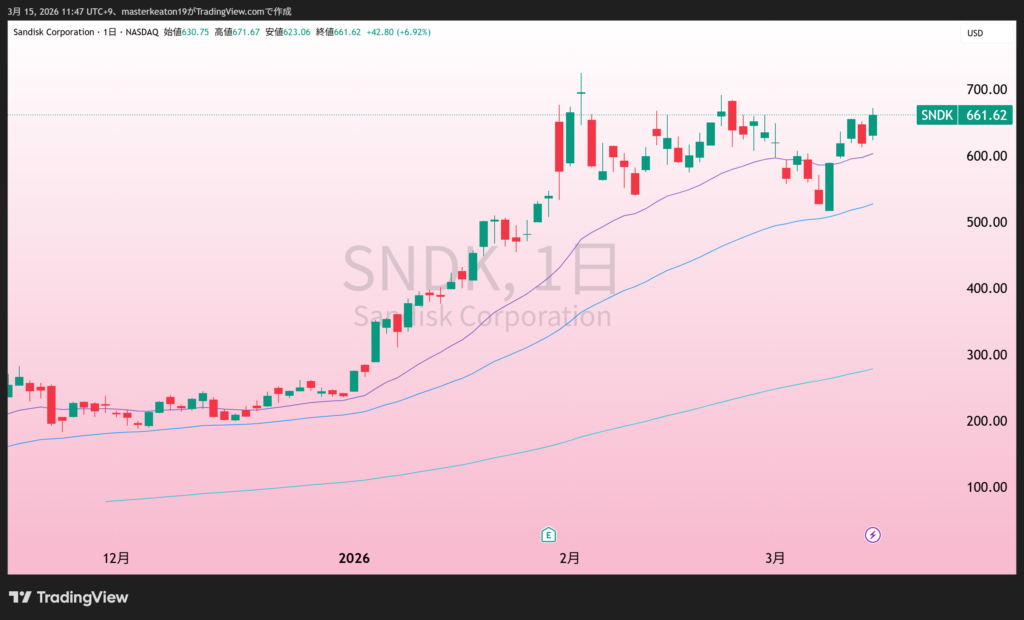 ↓↓サンディスクコーポレーション(SNDK)の株価チャート(日足)
