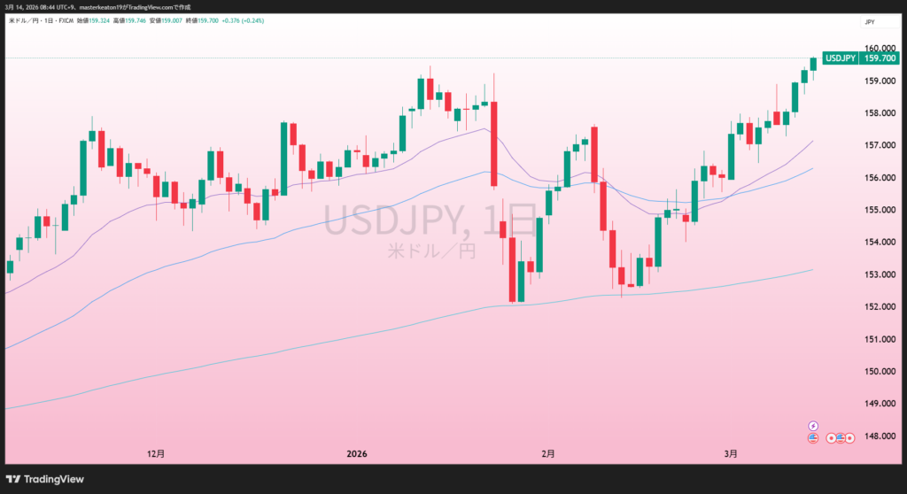 159.70円/ドルと先週から2円ほど上昇です。