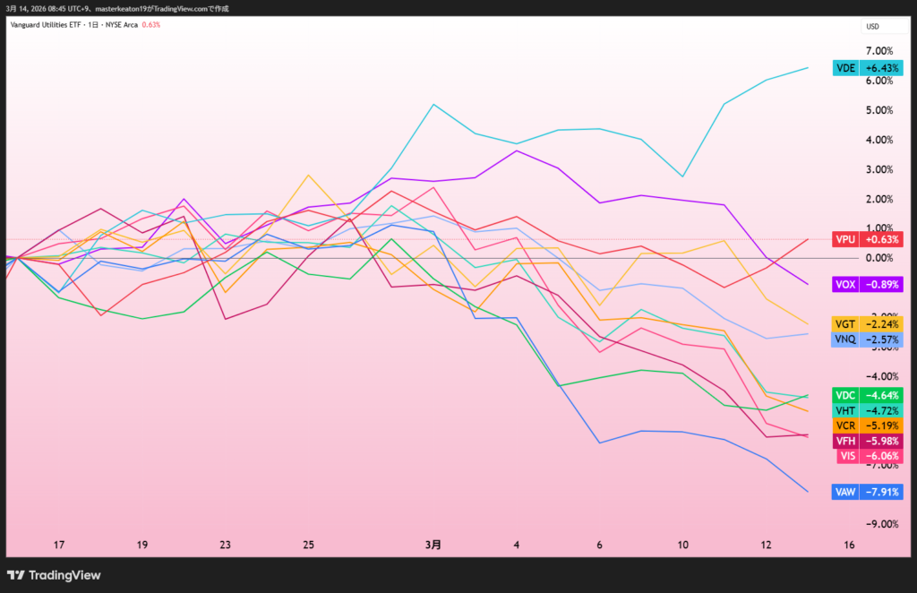 下図をご覧下さい。1か月のセクター毎の株価指数の推移です。