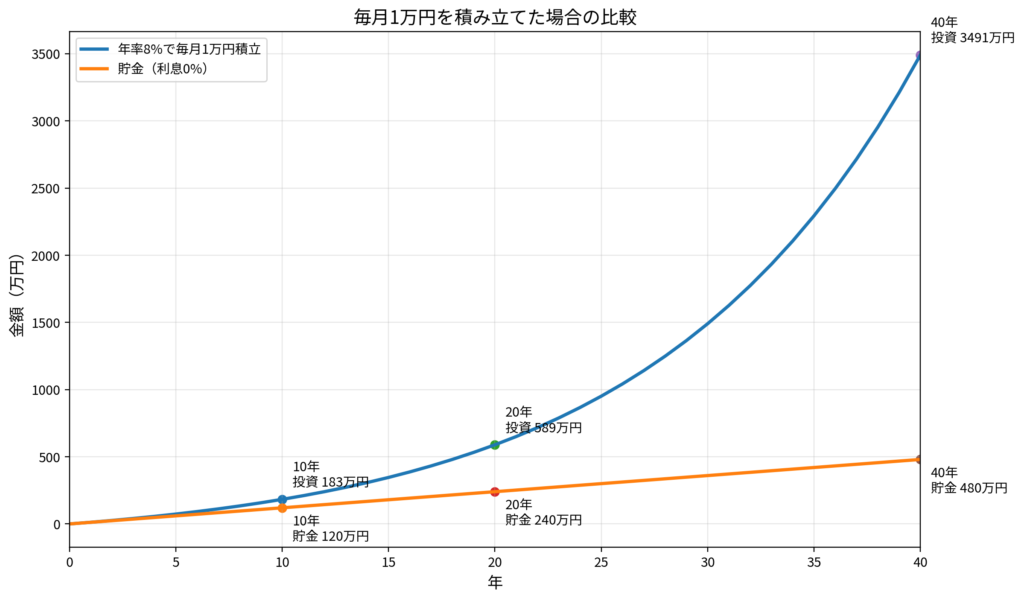 一刻も早く投資をはじめることで時間とともに資産を大きくできます!