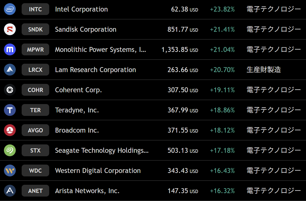 A.とりあえず半導体銘柄でよいでしょう。サンディスク、マイクロン、TSMCなどなど。