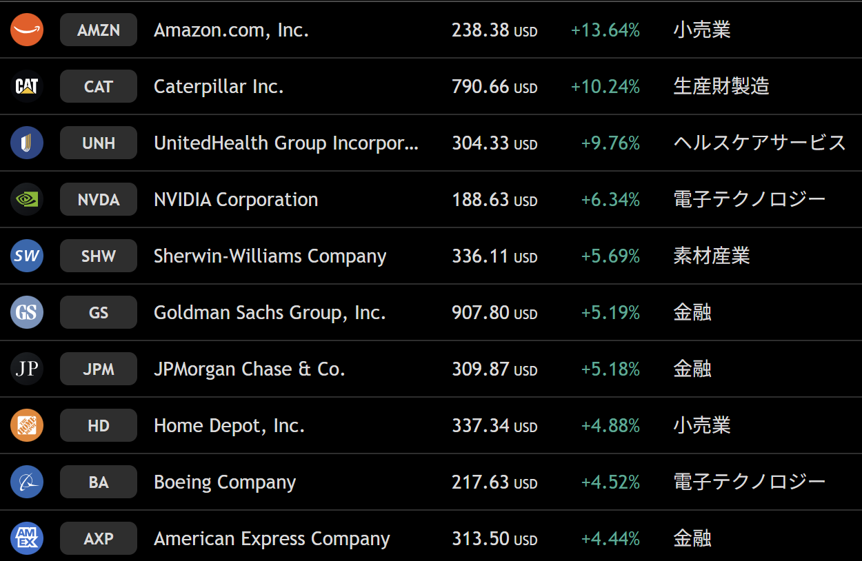 おっと、ここでAmazon(AMZN)がトップにきましたね。