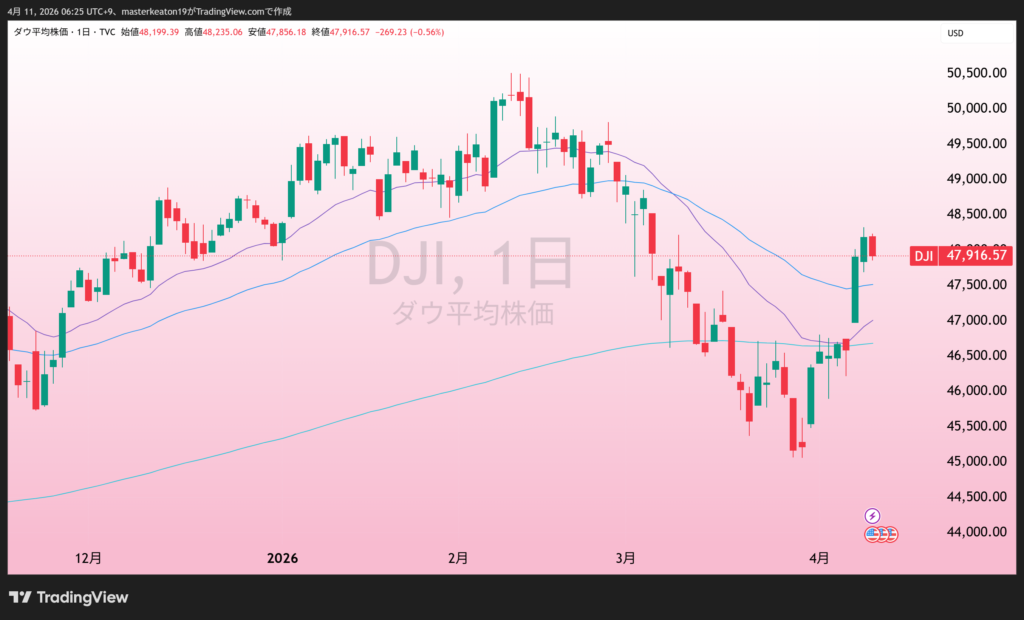 今週の米国株は、米イラン停戦で一気にリスクオン!ダウもナスダックも力強く上昇し、特に半導体が相場を引っ張る展開に。AI需要の強さも改めて確認できたね。ただし原油や金利はまだ注意。でも全体としては「流れは上」って感じ、いい地合いになってきました。