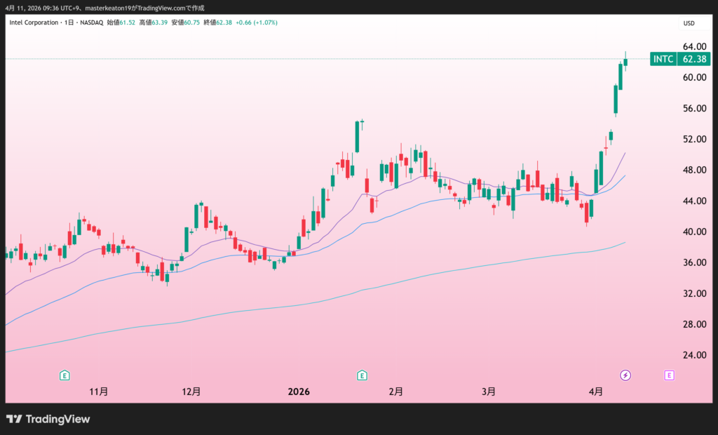 また、Googleとの協業拡大とのことでIntelが単なる再建株ではなく、AIインフラの現役プレーヤーとして見直された面が大きいです。